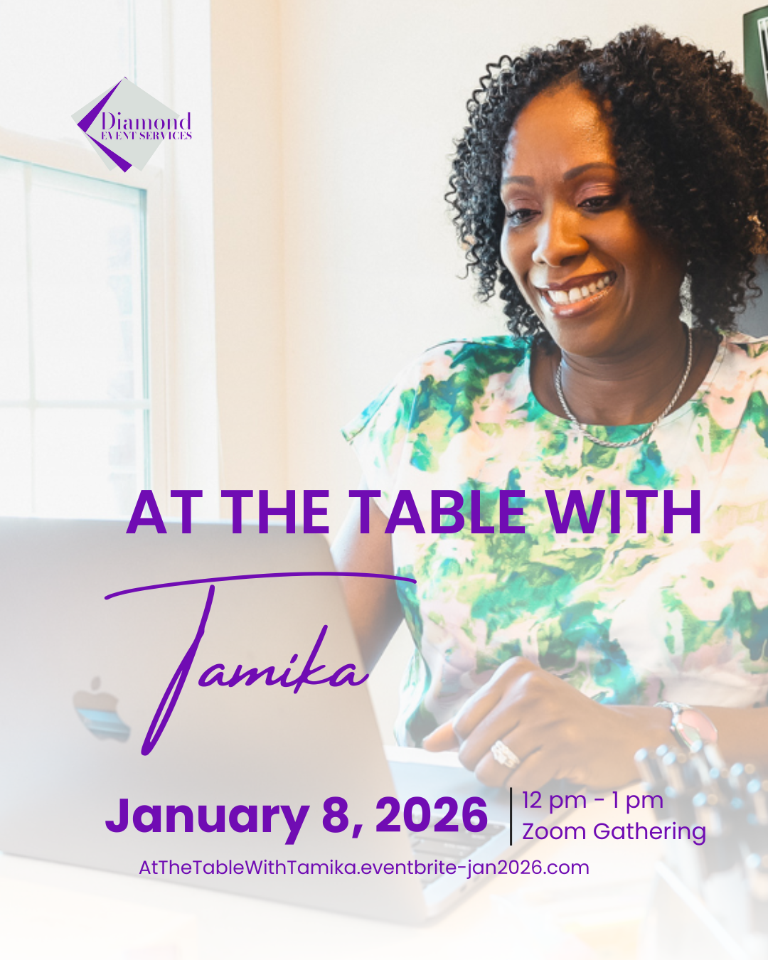 Join me, Tamika Josephs-Smith, founder of Diamond Event Services, for a small, intimate lunch Zoom designed to inspire, connect, and uplift entrepreneurs, creatives, and community leaders.